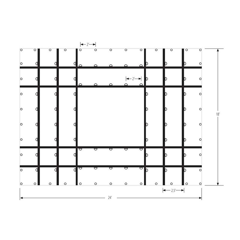 . Болат брезент: брезенттің 24' жағындағы 2 қатар D-сақиналары және 18' жағындағы 3 қатар D-сақиналары. D сақиналарының әрбір жолының арасындағы қашықтық 2'